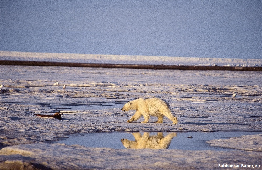 Thanks to climate change, Southern Beaufort Sea polar bear mothers increasingly depend on the Arctic Refuge coastal plain for winter denning. (Subhankar Banerjee)