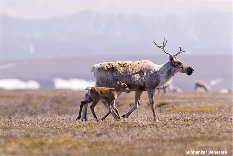 The Porcupine caribou herd uses the Arctic Refuge coastal plain each summer as its calving grounds. (Subhankar Banerjee)