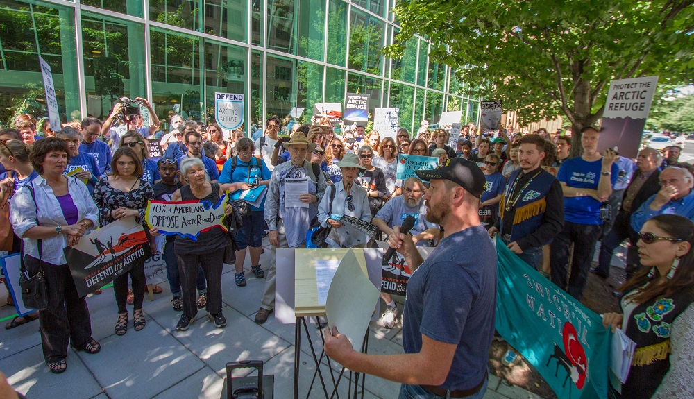 Ever since drilling proponents snuck an Arctic Refuge leasing provision into the 2017 Tax Cuts and Jobs Act, the Trump administration has been moving aggressively to rush through the required Environmental Impact Statement. During the scoping phase of the EIS, the BLM held only one public hearing outside of Alaska—in Washington, D.C., on a Friday night in mid-June 2018. Still, a large number of people showed up to voice their concerns about the ecological, cultural, and climate impacts of drilling in the Arctic Refuge.