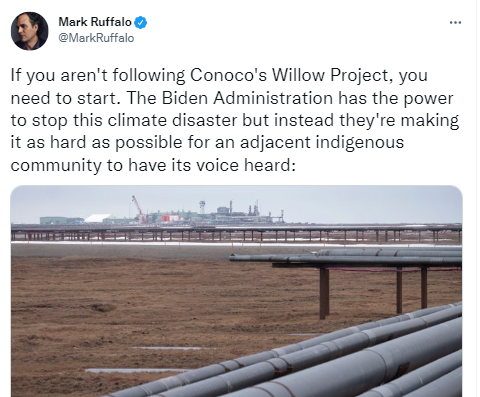 Everyone who testified against Willow sent a clear message: The administration cannot just rubberstamp massive, dirty and dangerous drilling projects without public scrutiny. A few of these statements are included below, starting with an unofficial tweeted comment by celebrity Mark Ruffalo: