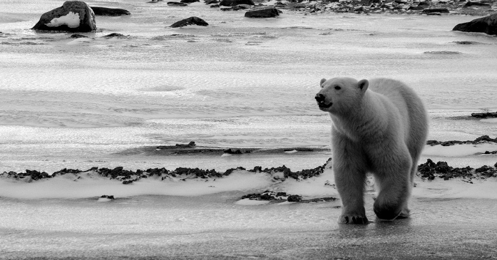 A polar bear patrols the shores of the Beaufort Sea. (Alex Berger)