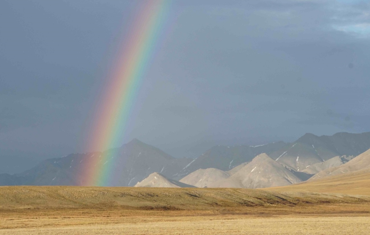 A quick rain ends with a rainbow over the Sadlerocht Mountains. (Alaska Wilderness League)