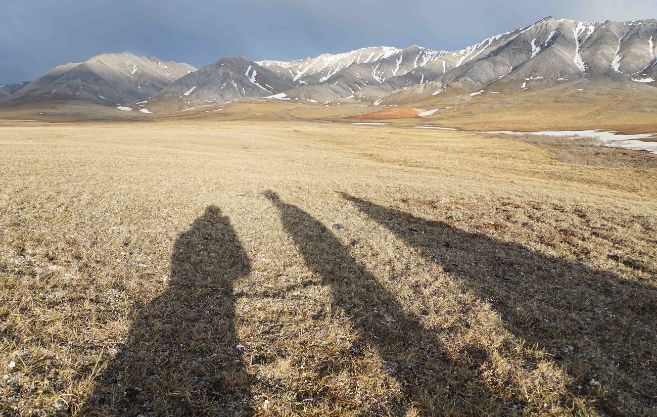 Our shadows at midnight. The sun won’t set on the Coastal Plain for another month. (Alaska Wilderness League)