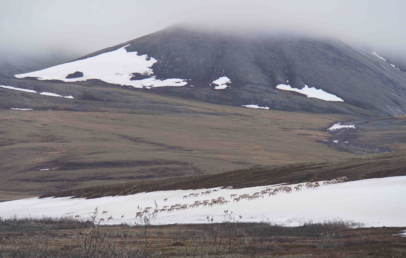 Far in the distance, dots lined the horizon – the Porcupine Caribou Herd was passing through the area, as it does each year, continuing its annual 1,500-mile migration.