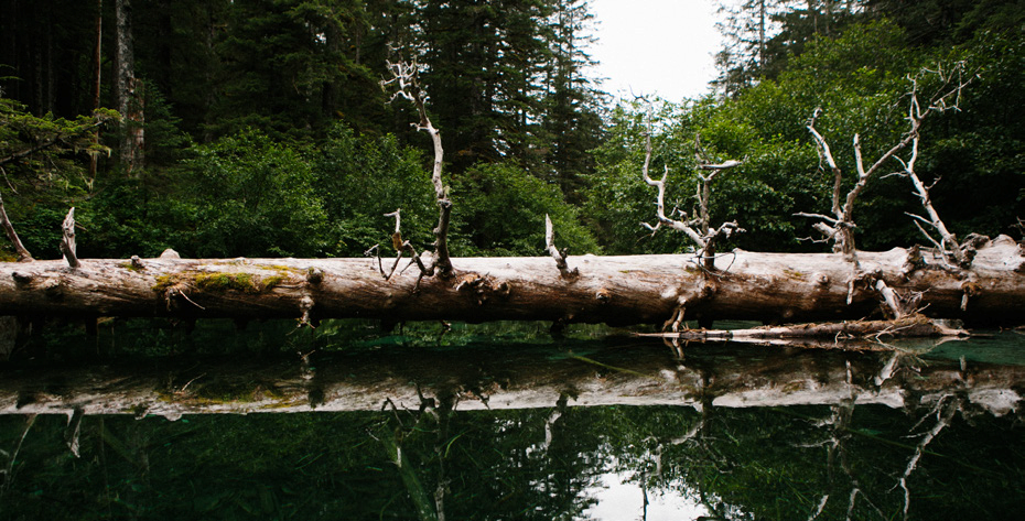 Millenia ago, water eroded a path between the forest and the ocean. Today, thousands of salmon streams run through the Tongass’ watershed. Each year, millions of salmon migrate from the ocean to spawn in upriver gravel-beds beneath the forest’s shade in perfect, pristine habitat, before they die. And, it turns out that their bodies are vessels carrying raw marine energy throughout the forest ecosystem.