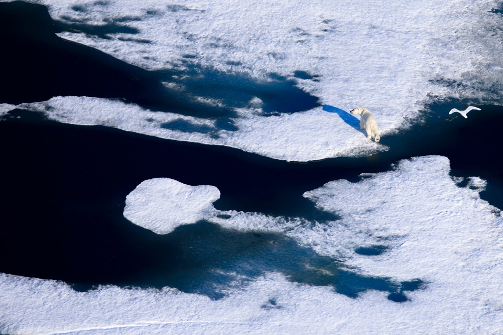 Polar bears are the only bear species to be considered marine mammals because they depend on the ocean for their food and habitat. They spend far more time at sea than on land. This polar bear is negotiating ice floes in the Beaufort Sea while hunting for seals. (Photo: Florian Schulz)