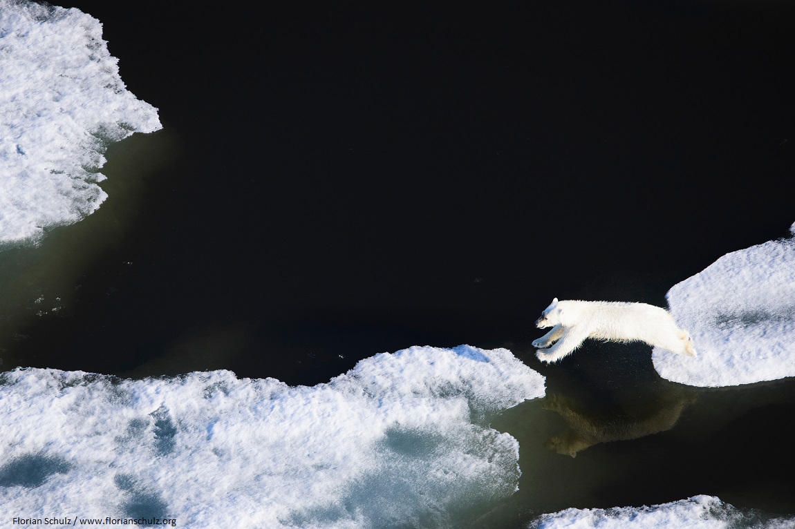A polar bear leaps across the ice in the Beaufort Sea. (Florian Schulz / www.florianschulz.org)