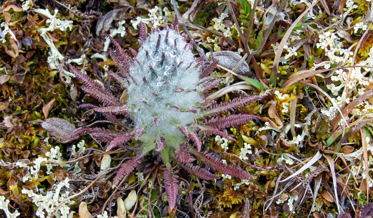 During our first two days, with temperatures in the low 30s and high 20s, we saw many mountain avens, familiar flowers in the Arctic as the first harbingers of spring, but other flowers were either tightly closed or yet to emerge. Then, on the third morning, we awoke to blinding sun and 60-degree weather. Spring had come overnight. Within two more days, the tundra was covered with purple mountain saxifrage with its starburst seed pods, woolly lousewort with its fuzzy heat retaining core, and many others. With just a few bumblebees around, it was definitely a pollinator’s market, so the new flowers had to put on their most colorful show to have a chance to be noticed during the short spring.