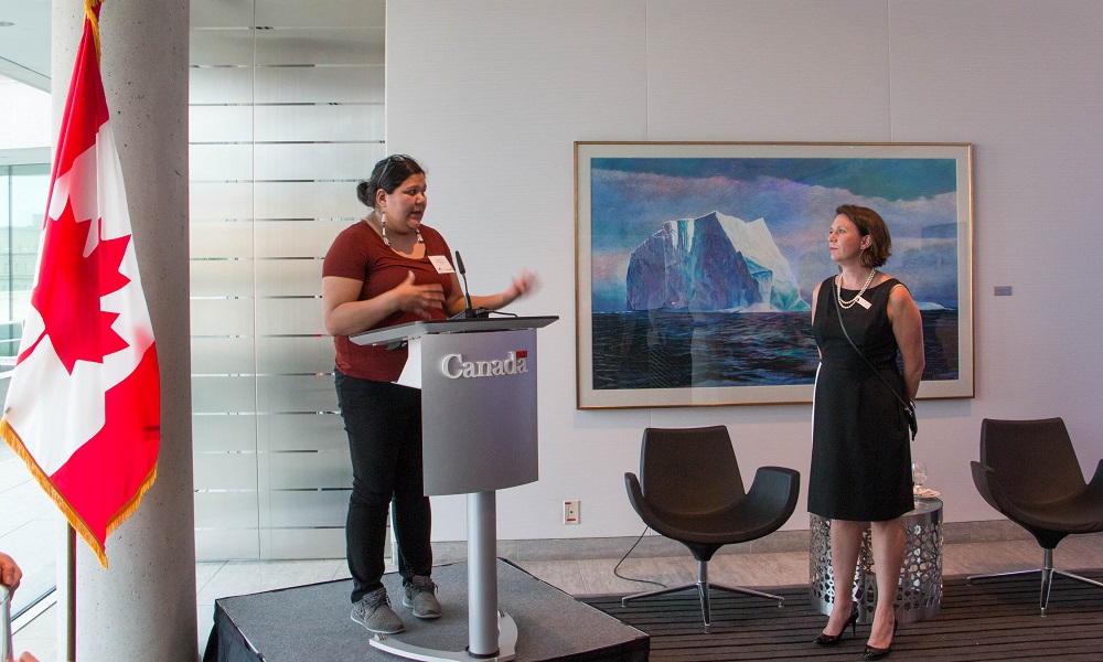 Donetta Tritt of the Gwich’in people speaks at a reception at the Canadian Embassy honoring the Gwich’in and Wilderness Week participants.