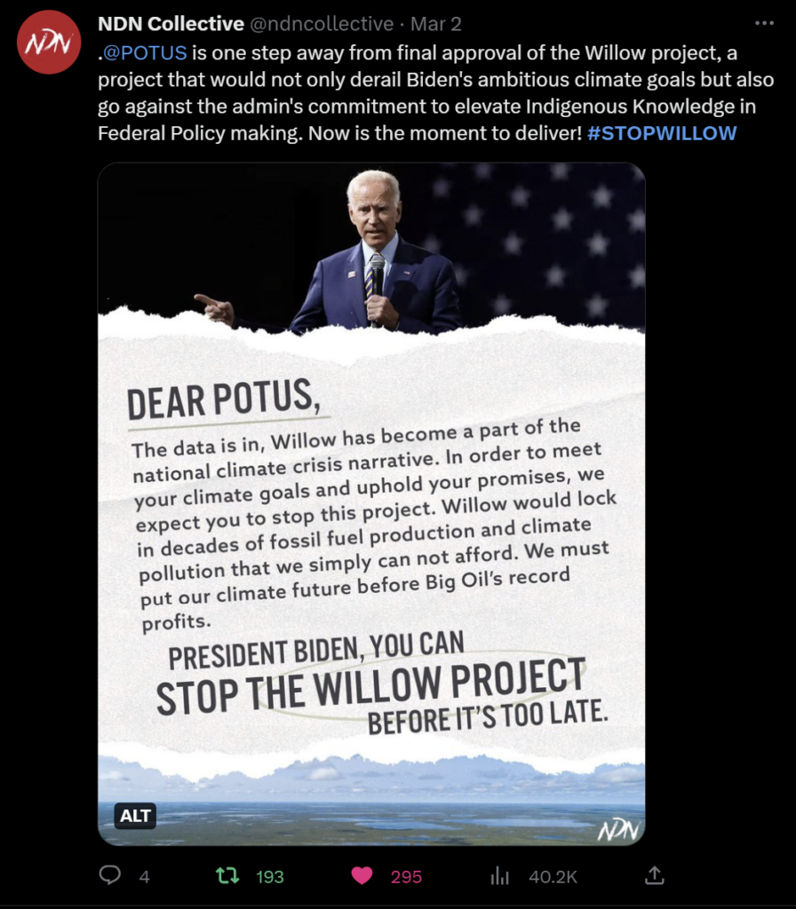 And we just returned from a rally in front of the White House calling on President Biden to stop Willow from moving forward.